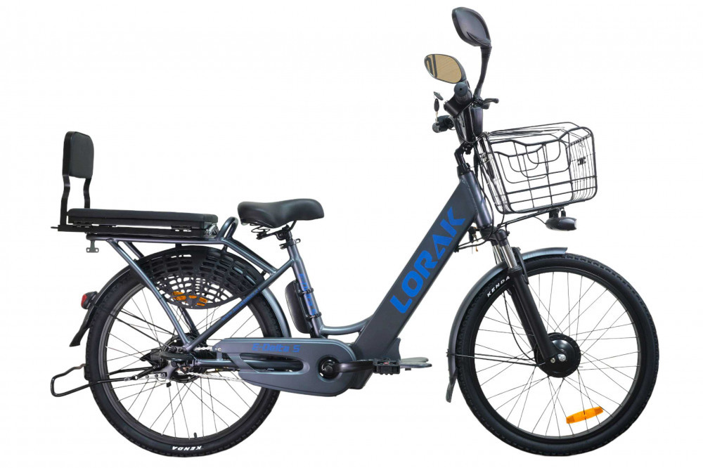 LORAK E-Delta S - электровелосипед очень похожий на мопед. Имеет переднюю корзину, задний багажник, большие зеркала.
