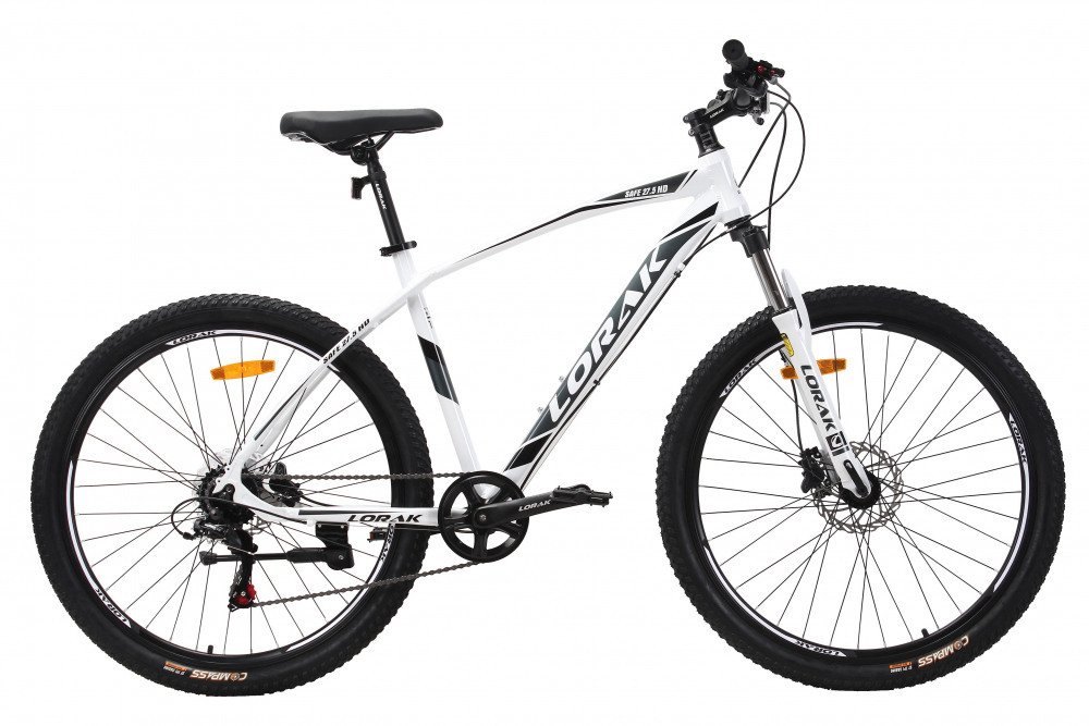 LORAK Safe 27,5 HD– велосипед на гидравлических тормозах, облегченной алюминиевой раме и на кассете. Колеса собраны ободах 27,5 дюймов и втулках на промподшипниках. Удобные рычажковые переключатели Shimano Altus. Трансмиссия от ведущего производителя Shimano. На модели установлена кассета от Шимано, что позволит выдержать высокую нагрузку.